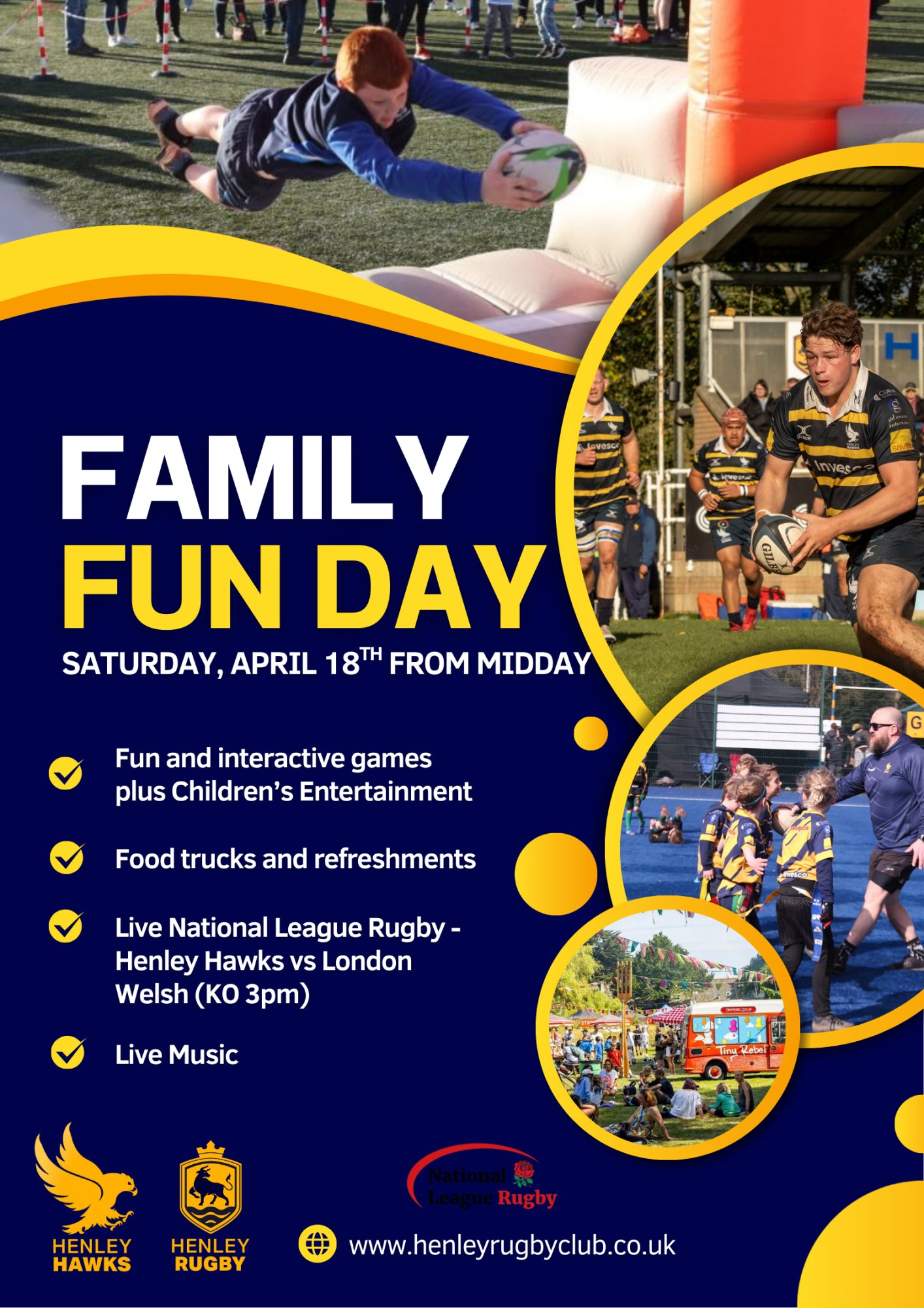 We are very pleased to share that our final Henley Hawks home league match of the season against London Welsh on Saturday, April 18th will be a Family Fun Day!